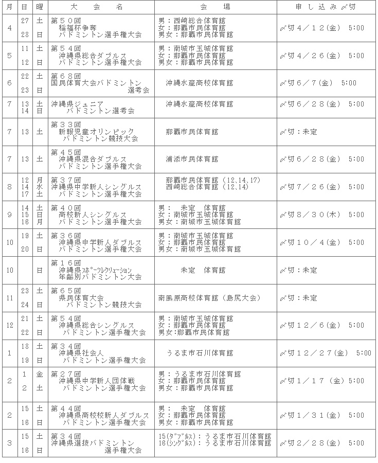 2013年(平成25年度)沖縄県バドミントン協会の大会日程をアップしました。